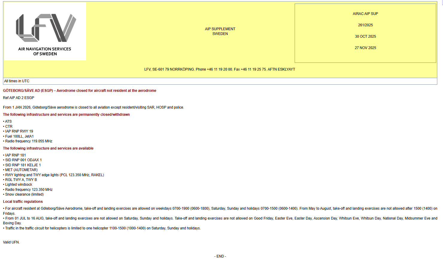 Please take part of AIP SIP 261/2025 regarding changes at ESGP.
